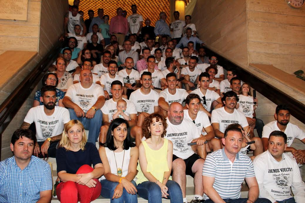 Albacete Balompié en el Ayuntamiento de la capital, felicitando de manera especial al presidente del