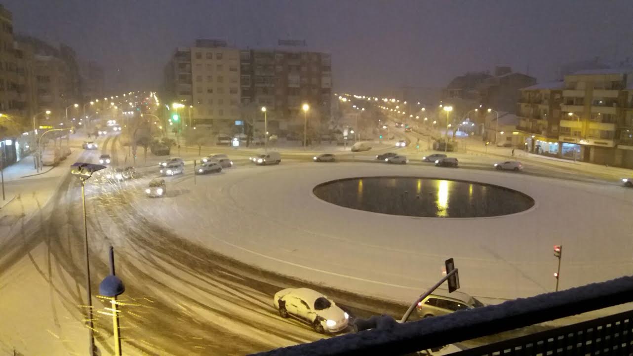 Centro de Albacete nevando. (FOTO ROSA M. MARTÍNEZ)Por su parte, la Unión Temporal de Empresas (UTE) API-Visever está trabajando con los 6 vehículos de los que dispone, entre camiones grúa, esparcidor de fundentes y hoja quitanieves, para garantizar el buen estado en las travesías de Albacete. Concretamente, están actuando en la N-301, N-430, N-322, CM-3203 (Carretera de Las Peñas), Enlace local N-430 a N-322, rotondas y paso superior desde Pozo Majano hasta el acceso sur al Polígono Campollano, y la carretera que va hasta el cementerio, habiendo esparcido esta tarde 19.000 kilos de sal y otros 6.000 más que se están distribuyendo en estos momentos, contando con otros 24.000 kilos de sal más por si fuera necesario hacer uso de ellos.