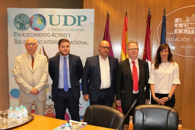 Unión Democrática de Pensionistas de Castilla-La Mancha (UDP) en la Diputación de Albacete y en la que ha estado acompañado por el vicepresidente de la institución provincial,