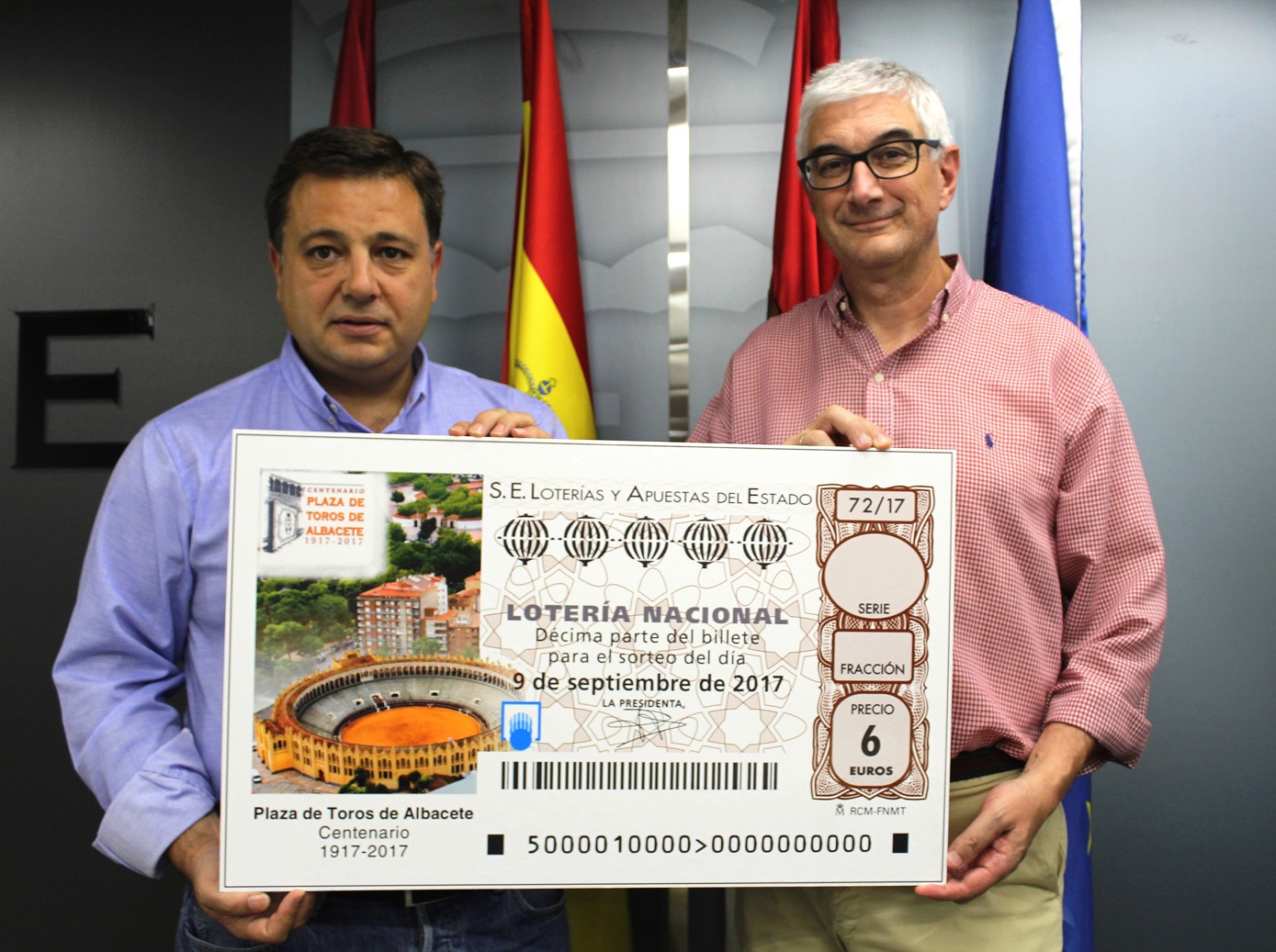 Según ha explicado Manuel Serrano, de este modo se conseguirá que “Albacete y su Plaza de Toros traspase fronteras y recorra toda la geografía española”, ya que “además de realizarse el Sorteo de la Lotería Nacional del 9 de septiembre desde nuestra ciudad, los décimos emitidos para ese día tendrán como protagonista indiscutible la imagen del Coso albaceteño con motivo de su primer centenario”.