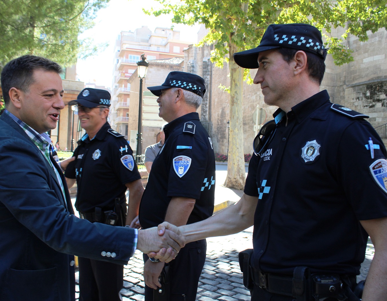 Manuel Serrano ha felicitado al intendente jefe de la Policía Local de Albacete, Pascual Martínez, así como a los 210 agentes que componen la plantilla de este Cuerpo, por la labor ejemplar que con tanta profesionalidad, dedicación y esfuerzo realizan diariamente para “dispensar tranquilidad, seguridad, orden, confianza, motivación y autoestima a los ciudadanos” y conseguir que podamos discurrir por nuestra ciudad con “tranquilidad y confianza”.