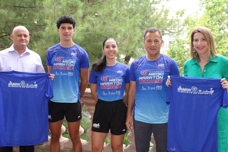 Según ha explicado Manuel Serrano, “la camiseta del 28° Medio Maratón Internacional ‘Ciudad de Albacete’, de la marca deportiva 42K, cuenta con un tejido técnico de máxima calidad, confeccionada con tejido 100% reciclado y combinada con detalles en color coral y azul turquesa en la parte delantera con el azul navy de la espalda y las mangas, incluyendo como novedad la imagen del skyline de Albacete en la parte trasera y el lema "Albacete es Deporte".