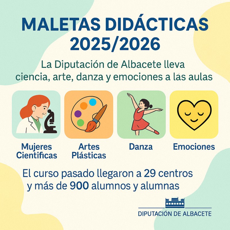 La Diputación Provincial de Albacete, a través de su Servicio de Educación y Cultura, ha anunciado la renovación y ampliación del proyecto 'Maletas Didácticas', una iniciativa que ya se ha convertido en referente provincial en el ámbito educativo.