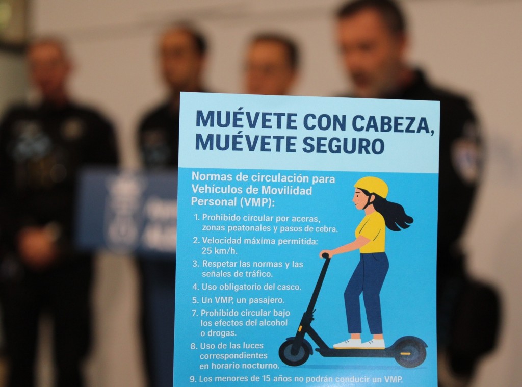 ALARMA SOCIAL.- Manuel Serrano ha lamentado que la "alarma social" que existe con este tipo de vehículos, es una realidad palpable, recordando que está prohibido circular por las aceras, zonas peatonales y pasos de cebra; el uso del caso es obligatorio, así como respetar las normas y señales de tráfico; no se puede superar la velocidad máxima permitida de 25 km/h; solo puede ir un pasajero que tenga a partir de 15 años de edad; está prohibido circular bajo los efectos del alcohol o drogas; es obligatorio el uso de las luces correspondientes en horario nocturno; y solo se puede circular por la calzada, carriles bici o vías autorizadas.