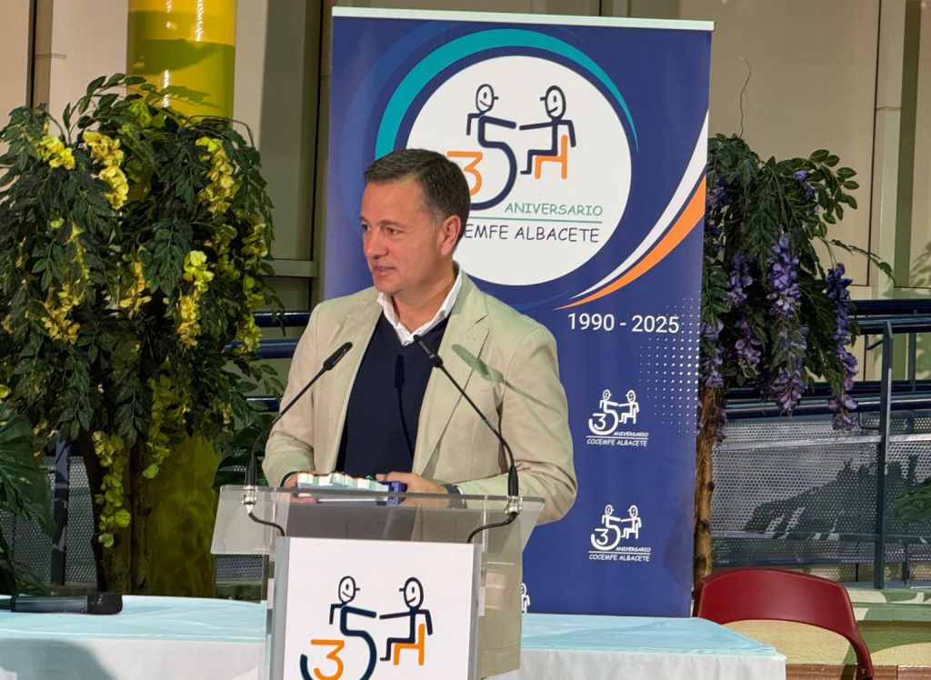 El alcalde y concejal de Inclusión y Accesibilidad, Manuel Serrano, ha agradecido a la Federación de Asociaciones de Personas con Discapacidad Física y Orgánica de Albacete, Cocemfe, el reconocimiento que hoy ha entregado al Ayuntamiento durante el acto que esta tarde se ha celebrado en el Centro de Atención Integral a Grandes Discapacitados Físicos y Orgánicos ‘Infanta Leonor’ para conmemorar su 35 aniversario, asegurando que “es un aliciente para que sigamos avanzando hacia una ciudad accesible e inclusiva en la que todas las personas puedan alcanzar sus sueños y aspiraciones sin barreras ni impedimentos”.
