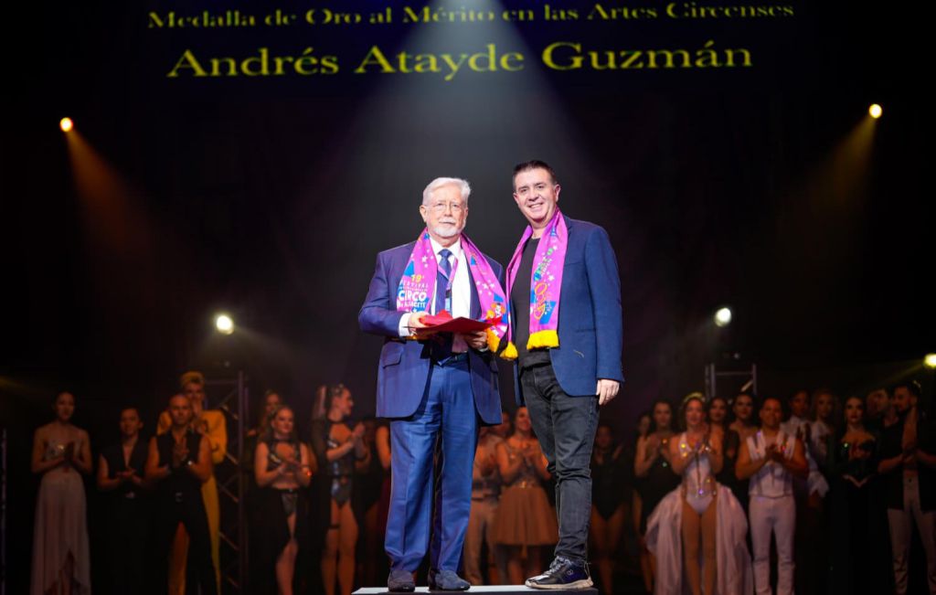 Además, la Medalla de Oro de las Artes Circenses ha sido concedida a Andrés Atayde Guzmán, de 95 años, figura histórica del Circo Atayde —el más antiguo de Latinoamérica— y jurado del Festival durante varias ediciones. El galardón, entregado por Santi Cabañero, ha sido recogido en su nombre por Peter Dubinski, al no poder asistir Atayde Guzmán por motivos de salud.