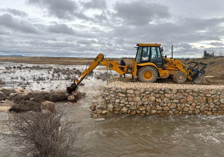 Según ha explicado Manuel Serrano, y siguiendo las recomendaciones de los técnicos, se ha enviado maquinaria pesada a La Herrera y a la Lobera con el objetivo de derivar agua a la balsa de laminación de La Lobera y a la gravera de La Herrera para bajar así la lámina de agua que llega a la red de colectores de la ciudad.