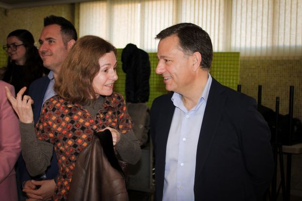 El alcalde Manuel Serrano ha asistido al Concierto de la XXVII edición del programa didáctico ‘Toca la Banda’ que se ha ofrecido a los usuarios y trabajadores de Asprona en el Centro Ocupacional ‘Eloy Camino’ de la calle Arboleda, donde ha saludado a la presidenta de la Asociación, María Dolores Olivares.