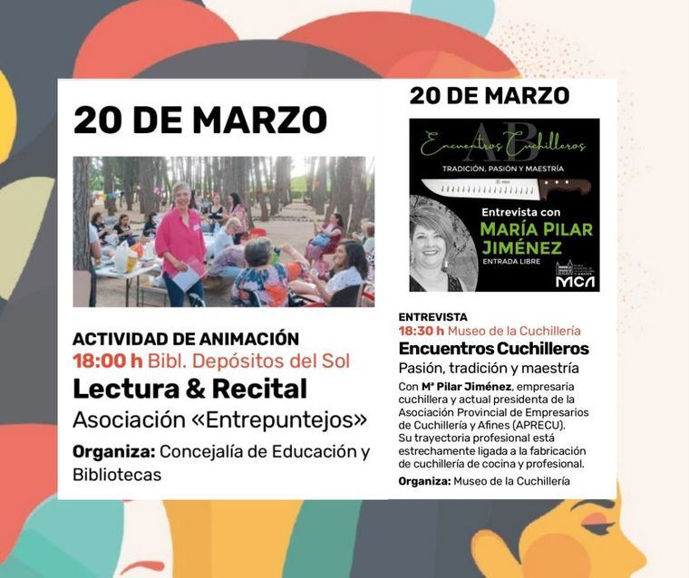La agenda cultural del mes de marzo continúa mañana en Albacete con nuevas actividades incluidas en la programación del ciclo ELLAS, que volverá a reunir propuestas culturales y divulgativas en distintos espacios de la ciudad. La jornada del 20 de marzo ofrecerá dos actividades que combinan literatura y tradición local, acercando al público encuentros en torno a la palabra y al conocimiento del patrimonio artesanal.