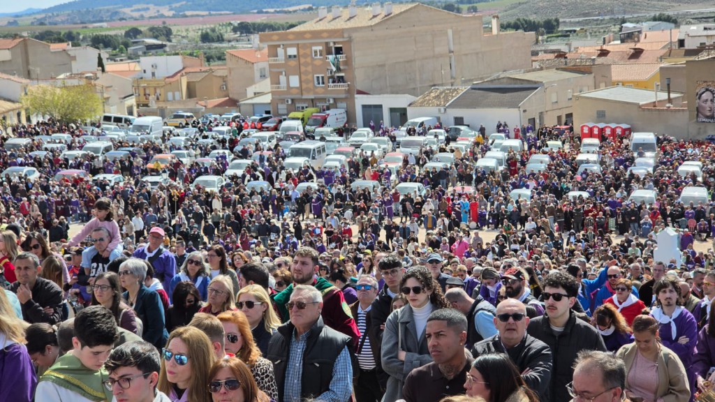 La llegada al Monte Calvario, con la presencia del Obispo de la Diócesis de Albacete, Ángel Román Idígoras, ha dado paso al momento más esperado: la Bendición de Nuestro Padre Jesús Nazareno a los cuatro puntos cardinales, de los actos más singulares y sobrecogedores de la Semana Santa de toda España. Un instante en el que el sonido constante de miles de tambores se ha detenido dando paso al silencio y a una escena que concentra siglos de historia y sentimiento colectivo para, justo después, volver a romper el silencio con estruendo.