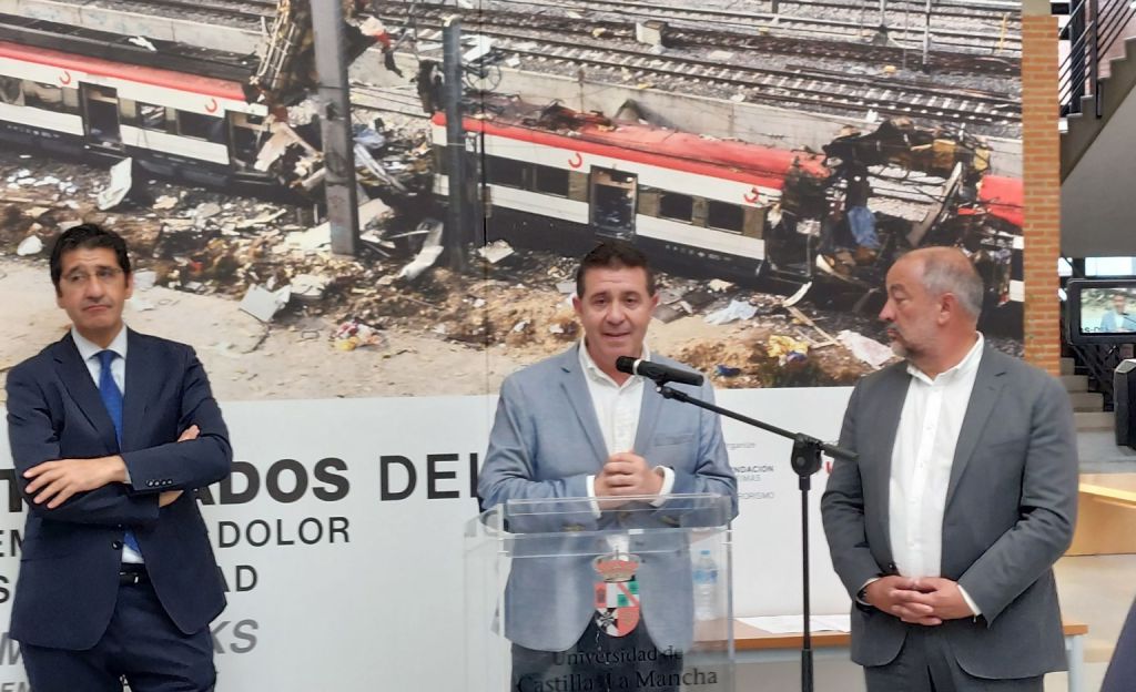 El presidente de la Diputación de Albacete, Santi Cabañero, defendió en la tarde de este miércoles que “la memoria no puede ser solo un recuerdo empático, un recuerdo solidario, es memoria colectiva y tiene que ser algo más, tiene que tener también una parte pedagógica, una enseñanza que tenemos que sacar como sociedad”, durante la inauguración de la exposiciónAtentados del 11-M. Memoria de dolor y solidaridad en el edificio Jurídico-Empresarial del Campus de Albacete de la UCLM.