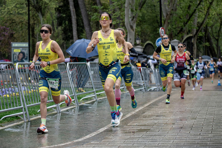 En la categoría femenina la carrera fue cosa de dos compañeras en el Club Triatlón Albacete Res: Carlota Sánchez Beserán y Laura Villar Palacios. Ambas se marcharon en cabeza en el primer segmento de carrera a pie, llegando igualadas a la transición. Fue en el tramo de bicicleta cuando Beserán rompió la carrera a su favor, logrando una renta que iba a ser definitiva. En el tramo final de carrera a pie Laura Villar recortó algo su desventaja, pero no fue suficiente para inquietar a la campeona. Laura Gallego Novillo, del Club Triatlón Tomelloso, ocupó el tercer cajón del pódium, por delante de otras dos corredoras del C.T. Albacete Res: Irene González Martí y Mª Pilar Ramírez Córcoles.