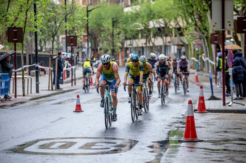 Bajo una fina lluvia se dio la salida a los corredores en un primer segmento de carrera a pie de 5 kilómetros de distancia en un circuito de dos vueltas. Casi desde el inicio Ismael García lideró la prueba, con unos segundos de ventaja sobre el grupo perseguidor. Esos 14 segundos de ventaja con los que llegó a la primera transición no fue capaz de mantenerlos durante los 20 kilómetros en bicicleta, en un circuito en el que hubo que tener mucha precaución en los giros debido al agua.
