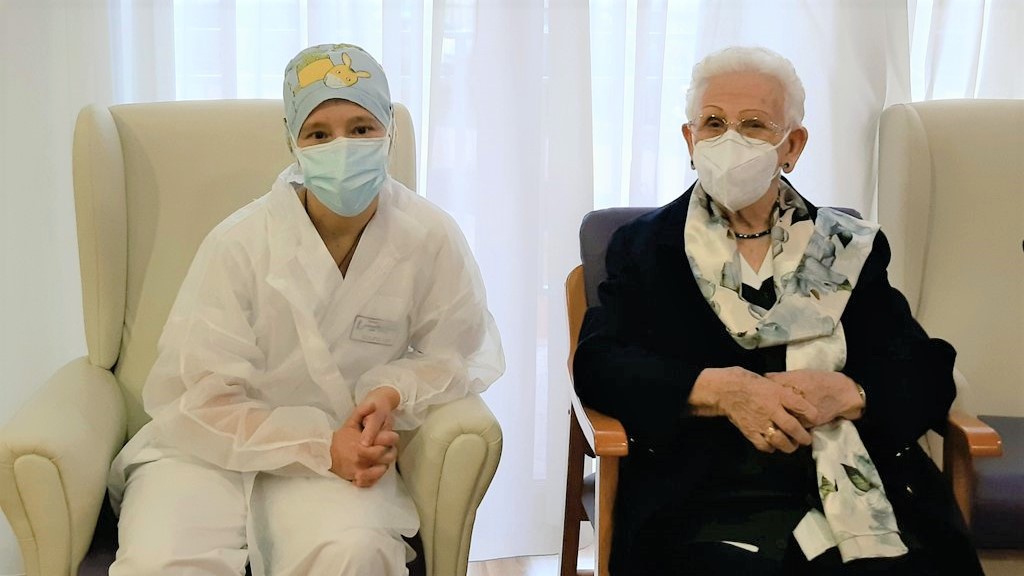 Tanto Araceli como Mónica han permanecido unos minutos sentadas tras recibir las vacunas, sin sufrir ningún tipo de reacción.