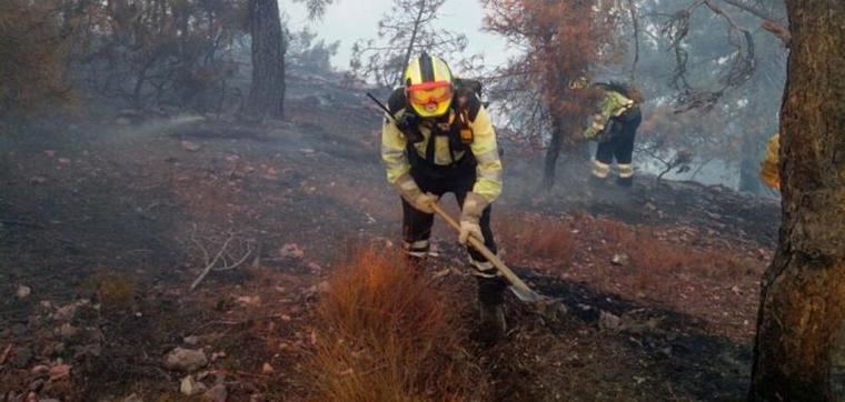 Según informa la Consejería de Agricultura, 11 medios y 46 personas continúan trabajando en la extinción del fuego de Yeste en Albacete.